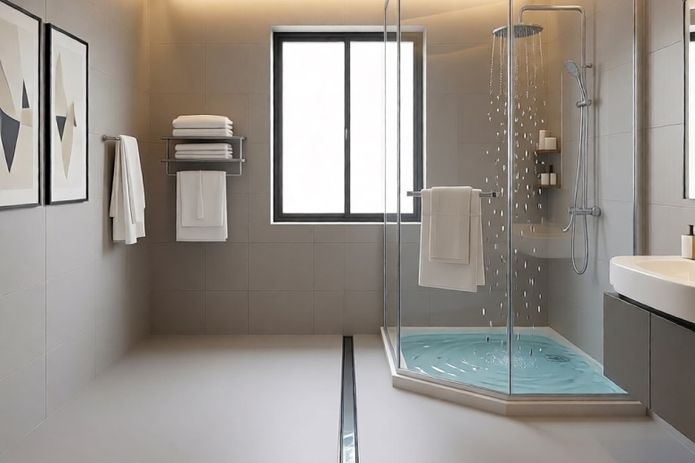 Однако переход на открытый душ требует грамотного инженерного подхода. Важнейший этап — качественная гидроизоляция всей площади помещения. Необходим точный расчёт уклона пола к сливу, чтобы вода уходила быстро и без застоев. Душевую зону лучше располагать в глубине комнаты, подальше от двери и мебели, чтобы минимизировать разбрызгивание. А дополнить картину поможет система тёплого пола, делающая поверхность приятной на ощупь и ускоряющая просушку. Этот тренд — отражение запроса на функциональность, безопасность и лаконичную эстетику, превращающую утилитарное помещение в пространство для отдыха.
