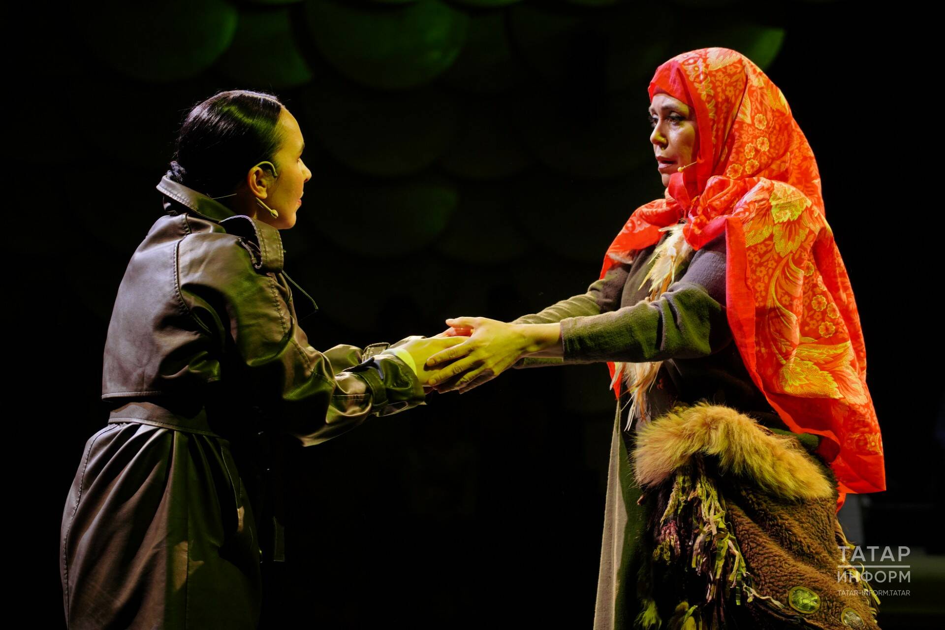 Беренче өлеш. Сәхнәдә арткы планда – саз тоткпн Динә Закирова белән курайлы һәм кубызлы Рөстәм Маликов. Алгы план — Әлмәт театрының атказанган артисты Мәдинә Гайнуллина, Лилия Гыйбадуллина үзе һәм Лилиянең галиҗәнап шигърияте. Режиссёр – Нәфисә Исмәгыйлева, пластика буенча режиссёр – Артур Шәйдуллин. Бу шигъри перфоманс — Лилия шигъриятенә бер караш, бәлки, хатын-кыз карашыдыр. Бу шагыйрьнең тарих буйлап узган юлы: заманча плащ кигән ханым мәҗүсилек чорыннан башлап, француз яулыклы татар әбиенә кадәр шигъри юлны узып, яка чылбыры таккан калфаклы ханым булып алдыбызга килде. Лилия Гыйбадуллина бу юлны тамашачы алдында Мәдинә Гайнуллина белән бергә узды.