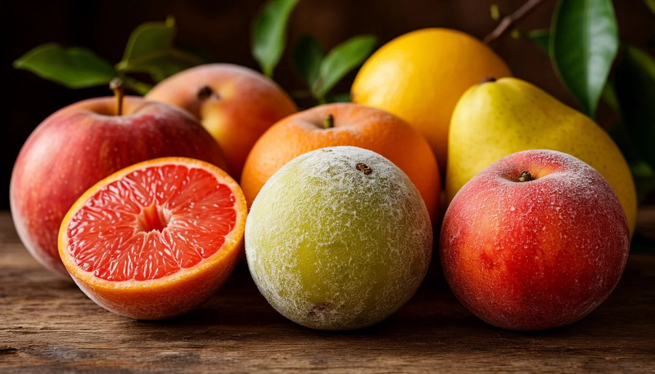 Представьте себе айсберг. То, что торчит на поверхности — это пушистый серо-зеленый налёт, который мы с отвращением срезаем ножом. А под водой — гигантская сеть невидимых нитей (мицелий), пронизывающая весь плод насквозь. На сочных фруктах и ягодах этот процесс идёт молниеносно: сок, тепло, влажность — идеальный рассадник для плесневых грибов. Вы удаляете пятнышко, а грибок уже «прописался» в самых дальних уголках вашего персика или клубники.